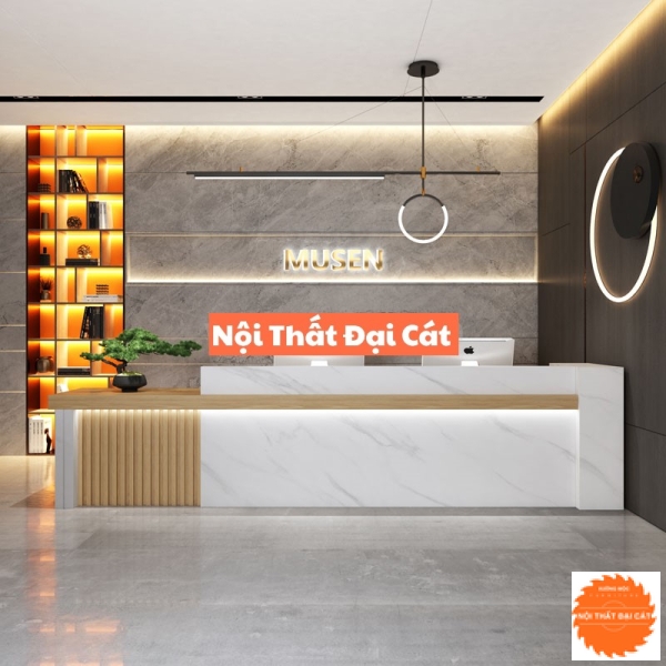 Nhanh chóng nắm bắt thị hiếu và các xu hướng thiết kế trên thị trường, tại Xưởng mộc Đại Cát bạn luôn tìm thấy được những mẫu bàn lễ tân đáp ứng nhu cầu sử dụng. Quầy lễ tân gỗ công nghiệp sẽ mang đến cho không gian tiếp khách công ty bạn một nét hoàn toàn mới thể hiện sự hiện đại sang trọng nhưng lại mang đến chút mộc mạc, gần gũi.
