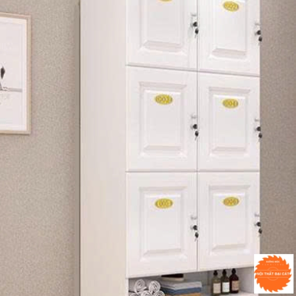 Tủ Locker tại Xưởng mộc Đại Cát có kiểu dáng cơ bản, thiết kế tối ưu hóa công năng, thoải mái nhất cho người sử dụng. Tủ có nhiều ngăn phù hợp để chứa đồ dùng cá nhân với số lượng nhân viên, người sử dụng quy mô lớn. Tủ được làm bằng gỗ MDF phủ melamine bền đẹp, chắc chắn, chống cong vênh, mối mọt.