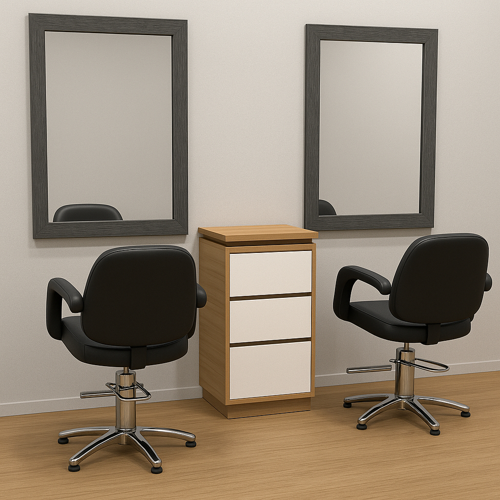 Tủ cạnh gương tiệm tóc thích hợp bên cạnh gương làm tóc, giúp tối ưu hóa không gian mà vẫn giữ được sự gọn gàng và đẹp mắt. Sản phẩm còn có thể dùng linh hoạt ở các vị trí khác như khu pha hóa chất, quầy lễ tân hoặc khu chờ khách.