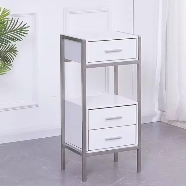 Tủ đựng có kích thước nhỏ gọn, phù hợp cho mọi diện tích, đặc biệt là những tiệm tóc nhỏ. Loại tủ này có ngăn kéo và thường đặt tại khu vực làm tóc để thuận tiện khi lấy sản phẩm, thiết kế cánh kín giữ cho sản phẩm luôn sạch, không bị bám dính tóc.