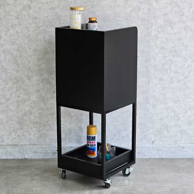 Tủ cạnh gương tiệm tóc thích hợp bên cạnh gương làm tóc, giúp tối ưu hóa không gian mà vẫn giữ được sự gọn gàng và đẹp mắt. Sản phẩm còn có thể dùng linh hoạt ở các vị trí khác như khu pha hóa chất, quầy lễ tân hoặc khu chờ khách.