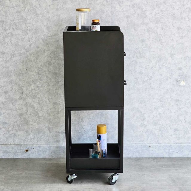 Tủ đựng có kích thước nhỏ gọn, phù hợp cho mọi diện tích, đặc biệt là những tiệm tóc nhỏ. Loại tủ này có ngăn kéo và thường đặt tại khu vực làm tóc để thuận tiện khi lấy sản phẩm, thiết kế cánh kín giữ cho sản phẩm luôn sạch, không bị bám dính tóc.