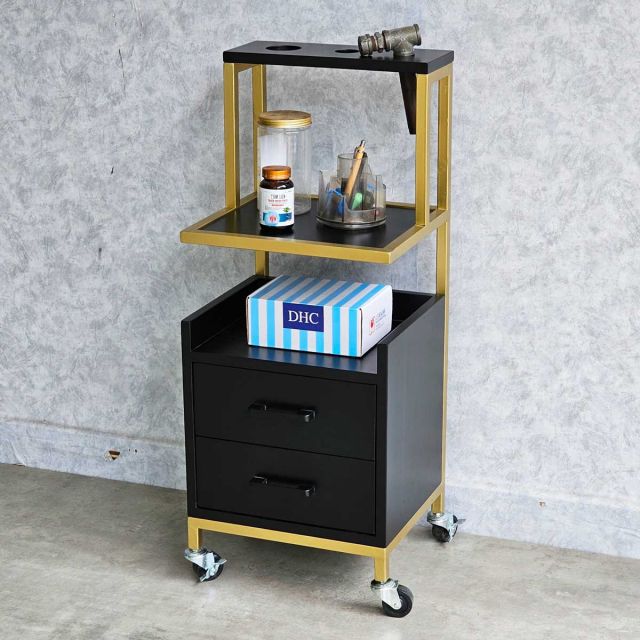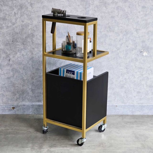 Tủ cạnh gương tiệm tóc thích hợp bên cạnh gương làm tóc, giúp tối ưu hóa không gian mà vẫn giữ được sự gọn gàng và đẹp mắt. Sản phẩm còn có thể dùng linh hoạt ở các vị trí khác như khu pha hóa chất, quầy lễ tân hoặc khu chờ khách.