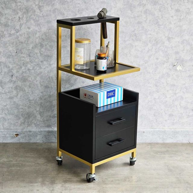Tủ đựng có kích thước nhỏ gọn, phù hợp cho mọi diện tích, đặc biệt là những tiệm tóc nhỏ. Loại tủ này có ngăn kéo và thường đặt tại khu vực làm tóc để thuận tiện khi lấy sản phẩm, thiết kế cánh kín giữ cho sản phẩm luôn sạch, không bị bám dính tóc.