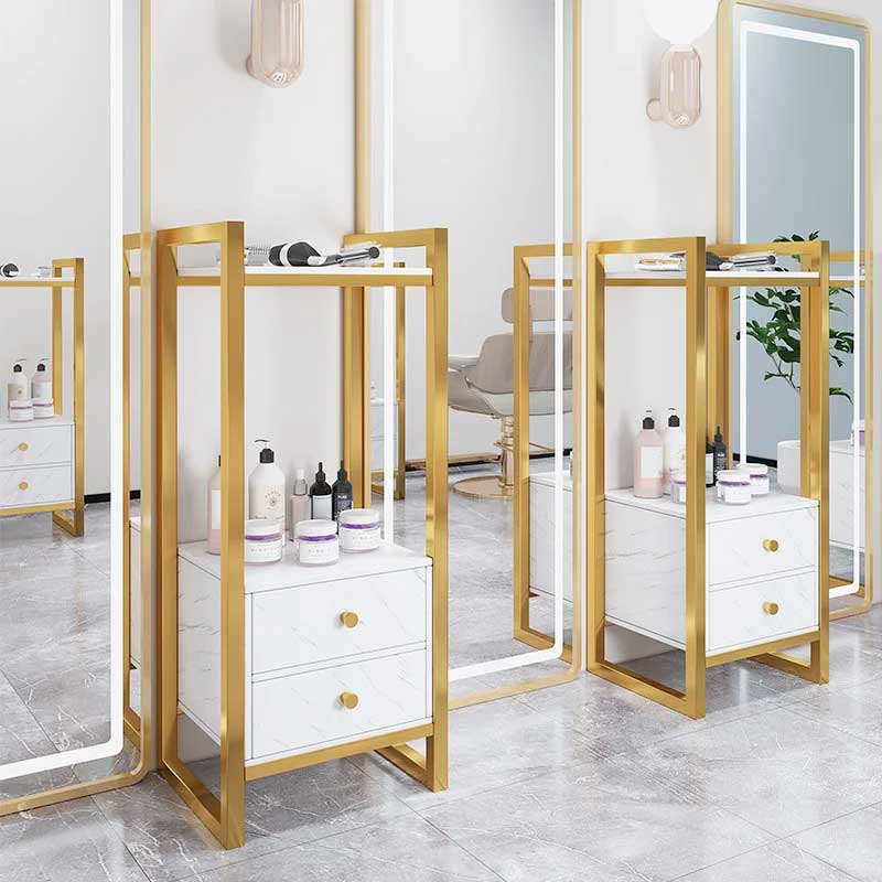 Tủ cạnh gương tiệm tóc thích hợp bên cạnh gương làm tóc, giúp tối ưu hóa không gian mà vẫn giữ được sự gọn gàng và đẹp mắt. Sản phẩm còn có thể dùng linh hoạt ở các vị trí khác như khu pha hóa chất, quầy lễ tân hoặc khu chờ khách.